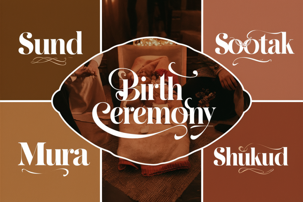 • जन्म के दिन मित्रों और रिश्तेदारों में चीनी की डली या भुने हुए अनाज से बना ‘मूरा’ बाँटकर लड़के के जन्म की घोषणा की जाती है।
