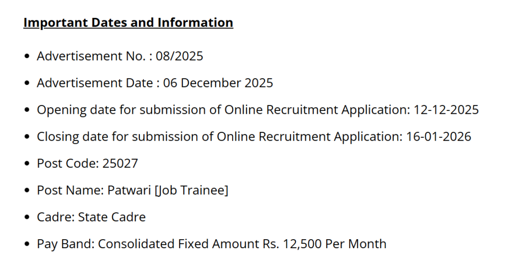 - Opening date for submission of Online Recruitment Application: 12-12-2025