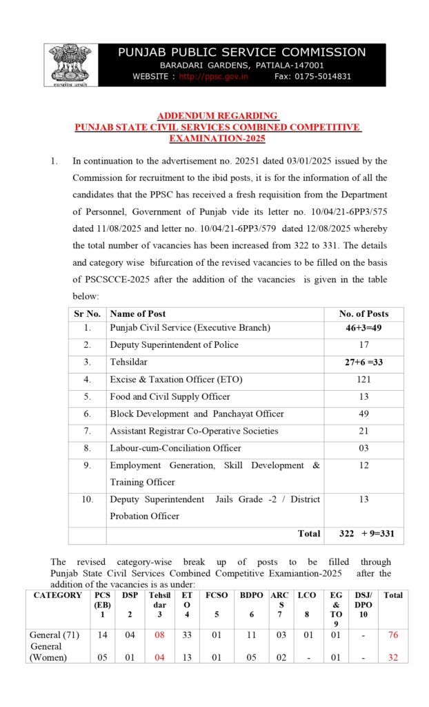 PCS 2025 – Public Notice [03 Sep 2025] – Addition of 9 New Posts