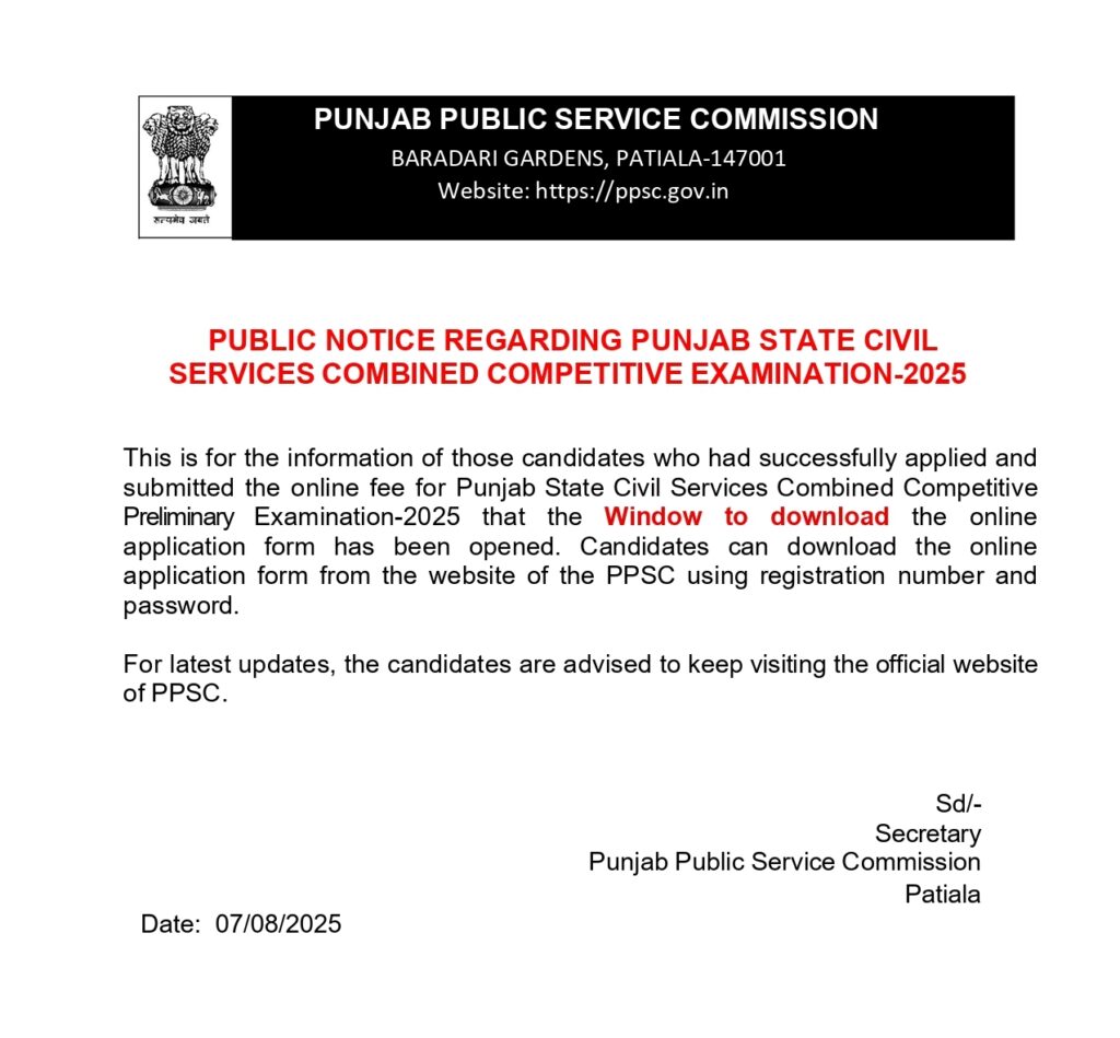 PCS 2025 – Public Notice [07 Aug 2025] – Download Online Application Form